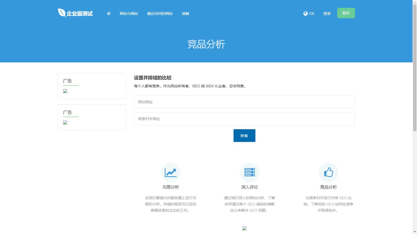 高级 SEO 化在线优化检测分析源码,获得更高收录 提示:分析网站需要大量服务器资源,小服务器使用估计有点卡,语言是英文 有助于确定您的 SEO 错误并优化您的互联网网页内容以获得更高的搜索引擎评级 它还提供与您的竞争对手的逐个方面的 SEO 比较。分析报告甚至可以下载为 PDF 文件以供离线使用 英文版的,没看到汉化