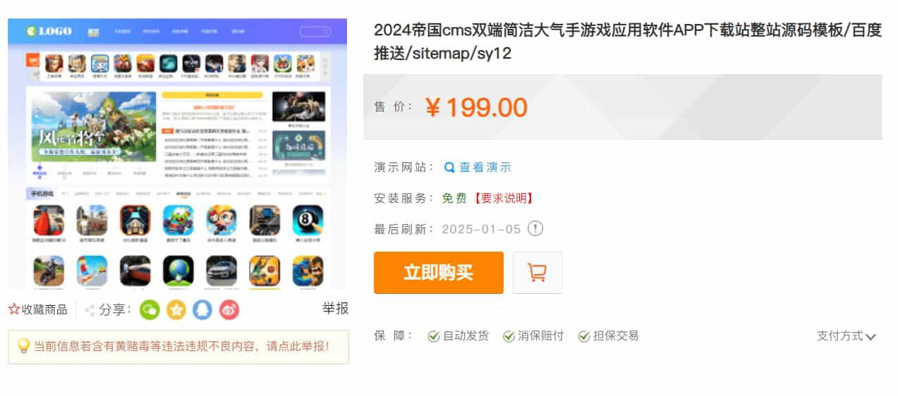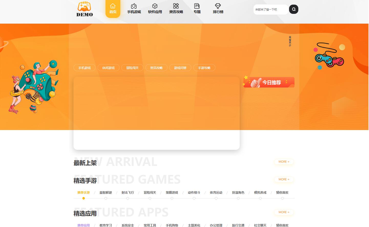 帝国CMS7.5手游游戏应用软件APP下载站整站源码模板/百度推送/sitemap/同步生成 已清空了默认采集的数据,避免不必要的麻烦!填满数据,1级,2级推荐几个就正常了。 【内页(文章页、列表)标题,描述,严格的SEO标题规范,利于SEO,养站养域名还是不错的, 带比较简洁漂亮的手机端模板】
