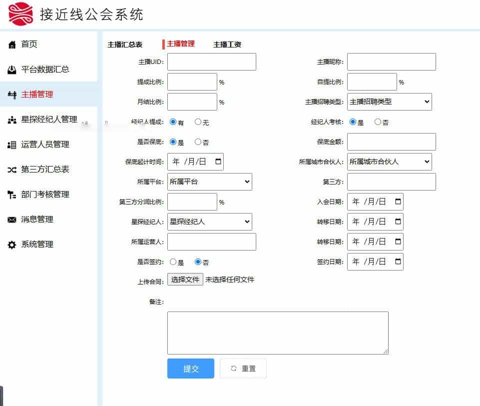 工会系统抖音快手等多平台主播分红分润系统星探经纪人城市合伙人多角色管理系统分红统计系统 博主搭建了下,应该是比较老的源码。后台页面打开速度较慢,但可以正常打开。