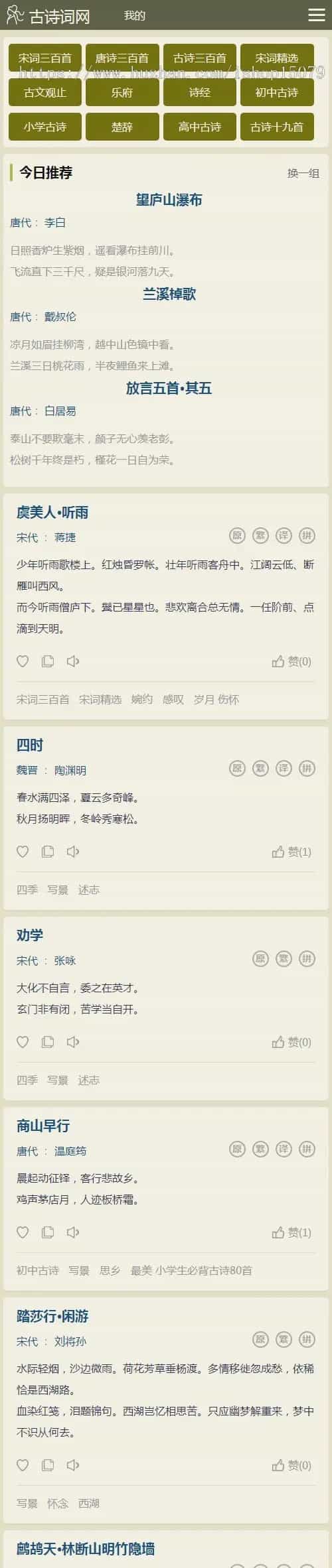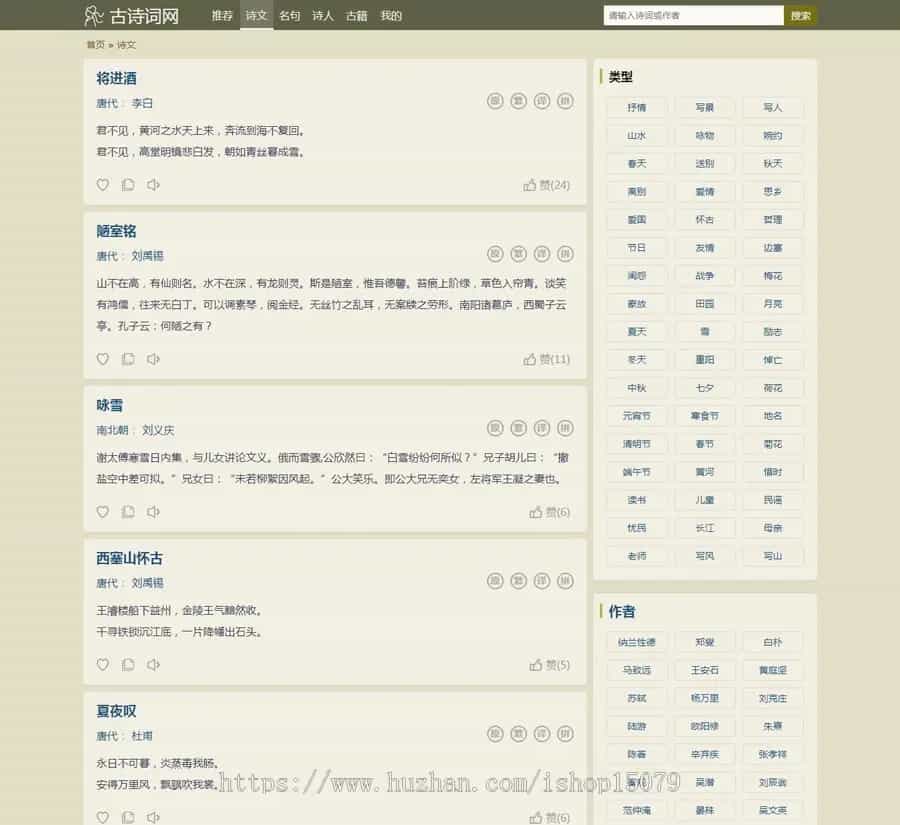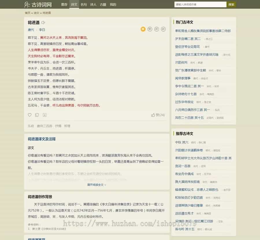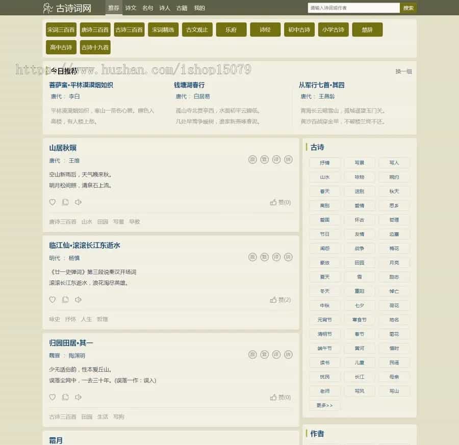 帝国cms自适应古诗词网古籍名句网站,古诗名句古诗大全源码,全套源码 整站源码带后台 带采集规则,自适应手机移动端,带语音播放,转换繁体,古文翻译,注拼音等功能,更多功能请看演示站。 可以做一个古诗大全,古诗词名句,古诗词鉴赏,名诗名句大全,古诗词三百首,唐诗大全,宋词名句, 经典古诗文,古诗文大全,古代诗歌大全等古诗古词属于自己的网站。