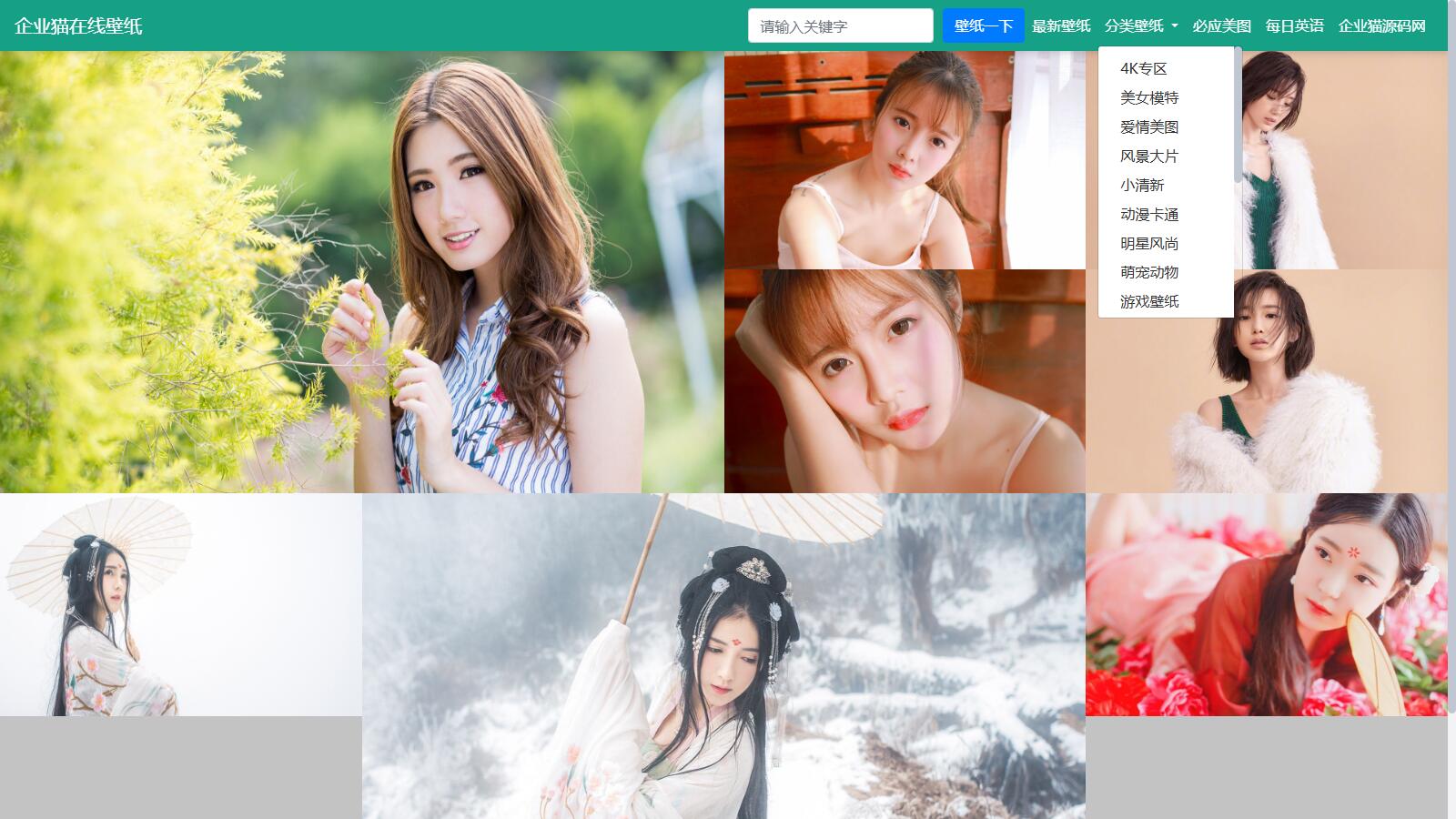 直接搜索自己想要的美图壁纸种类多、自动更新,自动采集、瀑布流加载、全站 ajax!