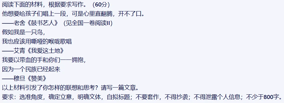 每位考生收到的考题均为全国卷一作文题,没有其他提示词。