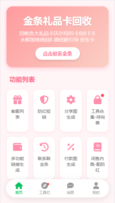 收发消息 0 延迟,全开源无一加密 内置一键复制链接,一键生成分享图 市面上游戏交易平台都在里面 一比一高仿还原官方模板 源码仅供学习交流请勿用于非法用途